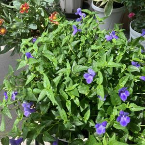 トレニア は暑いのが…お好き❣️ トレニア カタリーナ ブルーリバー 1ポットがやっとモフモフしてきました💙💜 ピンクとブルーのトレニア もモフモフ、小さな鉢に2個入れでは可哀想かな😅💦