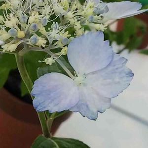 山紫陽花 揚羽蝶 装飾花のガク片の一部が広く開くと蝶のような変わった咲き方をするガク咲きのヤマアジサイです