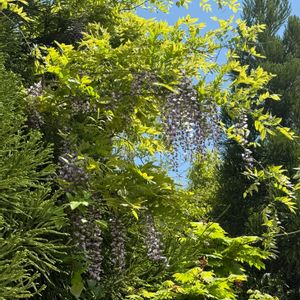 こんにちは🐰☔️ バラ公園の入り口に咲いてた花 フジ 藤 ふじ 私の大好きな 藤の花 が咲きました💕 フェンスとモミジの木に絡まって、自然のままのように広範囲に咲いてたの😀ワァ素敵〜って、心の中で叫んでた🤭 亡き父が、大好きだった 藤💜💜今年も見れて幸せ╰(*´︶`*)╯♡ ユカリさんの🏷️目に青葉〜2025 にNo.3 藤で参加です。 5月15日
