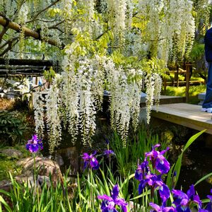 【今日のお花:フジ】 3月のお出掛け先で見た和紙人形の 藤娘、イナバウアーの如く美しく 反られています💜 お花は植物園の藤です🟣🟣🟣