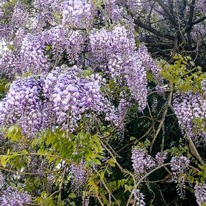 ᕱ⑅︎ᕱ" ( ⸝⸝•ᴗ•⸝⸝ ) ╭◜◝ ∪ ͡ ∪◜◝╮ ( *•◡•* ) おはヨウ💨 ╰◟◞ ͜ ◟◞ ͜ ◟◞╯ 藤の花 巨木のカヤに支えられ 今年も見事に |。•ᴗ•。)੭⁾⁾🍇🍇🍇🍇🍇 とても立派