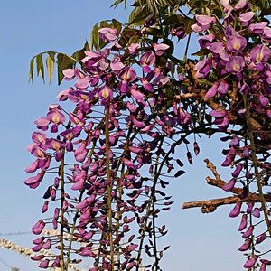 お出かけ先で藤の花を見ることができました 藤の花が春の風に揺れていました