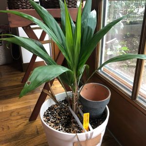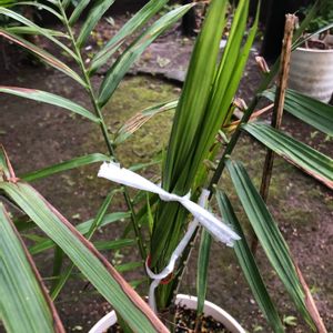 今年の夏で羽状葉が目立つまでに成長しました😁冬でも葉を出してくれるので好きなヤシの中の一つです サイズは根元から葉先まで65cm程