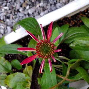 ❣️エキナセアダブルスクープクランベリー❣️ 仲間入りしました💕 丈夫で手間要らずと勧められて グリーンのも気になりましたが、 お高めなので一個でがまん😣 「来年には一抱えにもなるよ❗️」 と園芸店の若きご主人 来年が楽しみです🎶