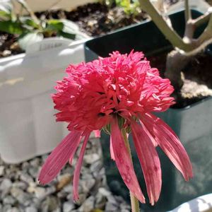 こんにちは*ˊᵕˋ* 今日は、日差しがあって、気持ちの良い秋晴れの1日でした。 ガーデンデザインも決まり、今日契約しました。年内完成予定で進む予定です。 今日のpicは、エキナセア ダブルスクープ。 買った時のタグのpicの色とどう見ても違っていたので、ネットで検索した結果、クランベリーだったのかな?って思ってます。ネットもサイトによって色味が違うから確実では無いですが… 前回載せた時の頭でっかちにはまだなって無いのかな?形が違いますが、再び咲き始めました。秋だからか色味が濃い感じ…。この形だと先日載せたエキナセア グァバアイスと変わらないみたいに見えますね😅 たぶん、この後咲き進むとタコさんみたいに頭が大きい感じになるのではないかな?前回のpicにも咲き始めの花がこんな感じに写っています。 *前回は、6月26日に載せてます。形と色の違いがよく分かるので、興味がある方は見てみてくださいね*ˊᵕˋ*