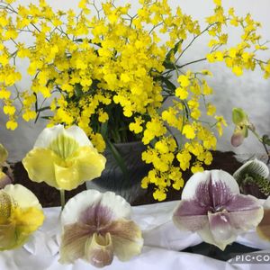 今日のお花 オンシジウム こんにちは😃 今日は穏やかに晴れて気持ちが良い冬日です。 以前出かけた蘭展より オンシジウムは他の蘭とのコラボが似合う花ですね♪