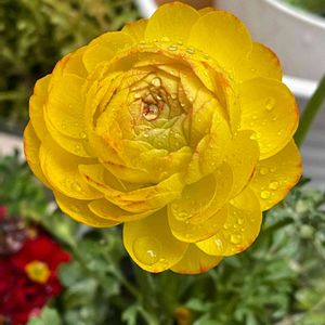 こんにちは 昨日、遂に❣️やっと❣️ 咲きました🥰🎵🎶🎵🎶 蕾を見つけてから10日 かなりゆっくりでした〜〜 黄色のビタミンカラー が嬉しい❣️ 直径3㌢くらいの可愛い花弁 購入時より、少し小さくなった気がするけど、色もフリンジも、なんとも言えず愛くるしい花です🌼