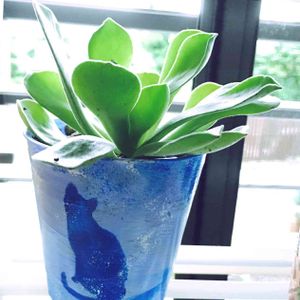 すすしげにブルーのポット(~‾⌣‾)~ (*Φ∀Φ)ネコ好きには たまりません((๑✧ꈊ✧๑))