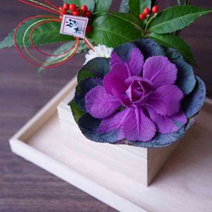 お正月のお花を飾りました。花びらの重なり方が美しい葉牡丹や赤い実が鮮やかな千両は「花空間」さんから頂きました😌 種明かしですが、実は…升に飾っていると見せかけて、小瓶を2つほど忍ばせています😅💡
