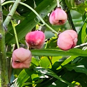 こんにちは、 今日の花 ムベ アケビと違ってパッカンしないようですね。😆