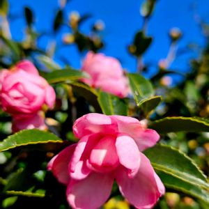 こんにちは、今日は晴れ☀️で風が強いですね。 サザンカが咲き始めました。