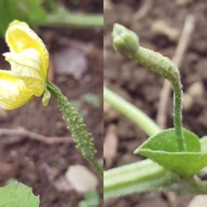 我が家のゴーヤ😁 知らぬ間に出来ていました✨ 花も可愛いです🌼
