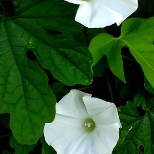 今朝咲いた朝顔は、真っ白🐱 涼やかな、花色です🎶 ゴーヤの花も、たくさん咲いています🎵