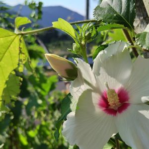 ムクゲ 白地に紅く まるで日本の象徴の様 襟を正して 凛と 心の中に忘れない日本の魂🇯🇵