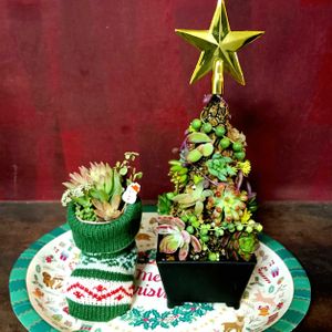今日の多肉ちゃん クリスマスツリー🎄を作ってみました 可愛く出来たよ