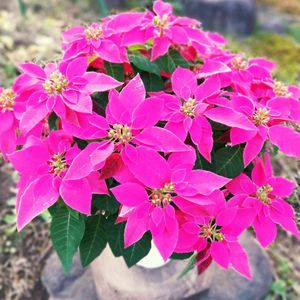 ピンクのプリンセチアが届くと聞き、ピンク持っているのに…と思っていました。 届くとビックリ‼️ 見事なショッキングピンクにドキドキ😍💓 お花畑のよう✨✨ とても嬉しいです。 これ1つで華やぐ🌺 大事に育てます。