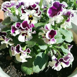 植え付けて3週間のミルフル、フリルのお花がいっぱいです✨ かわいすぎてドキドキします🥰 360度どこから見ても、お花がカメラ目線❗ 今の所、我が家のビオラの中では一番育ちが良いです。 ただ困り事は、初めて育てるフリルのビオラなので、花がらが分かりにくい〰️🥺 大事に育てるね🎵