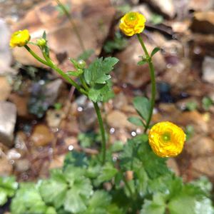 初めて見ます。 里山の陽のあたる清水が流れているところに咲いていました。 ラナンキュラスを1〜1.5㌢位にした感じです。(ラナンキュラスの原種)