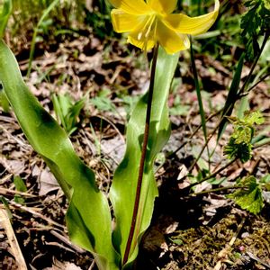 キバナカタクリ(黄花片栗) *ユリ科カタクリ属 花期は3〜4月 本来は、北アメリカの亜高山帯に分布しますが、日本には園芸用として持ち込まれています。 日本に自生するカタクリと同様で、春の短い期間だけあらわれるスプリングエフェメラルです❗️ 4月28撮影 仙台市秋保大滝植物園