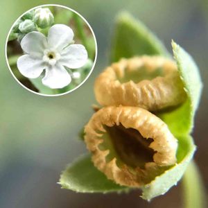 オンファロデスさんの種… ちっちゃな可愛いお花だけど種はイカの足の吸盤みたいな不思議な形…段々と茶色くなってきました。