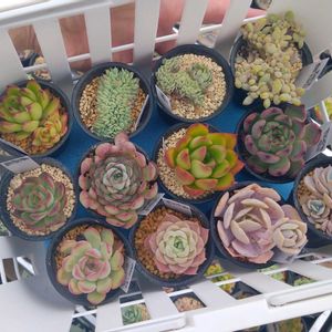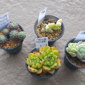 買い物ついでに覗きに行ったら、昨日いなかった子が増えてましたー💦 うん、しょうがない😅 左奥から センペルビウム ア・ブレイス レーマニー錦 ムーンストーン 月影