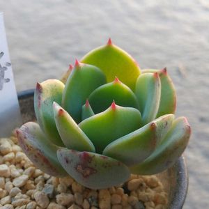 お疲れの様子のラフィネ。 同じ名前の子は居るのですが、姿が違うので新種かなー?🤔 雰囲気的にはグラプトベリアのデビーやエケベリアのパールフォンに似た感じがあります。 紅葉が楽しみですね。