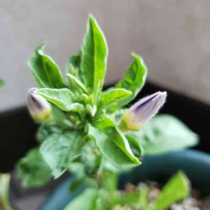 今日も雨風強くなると言うのでこの子を玄関に避難させました🌧️ ブルーの素敵な子、明日には咲くかなぁ😃