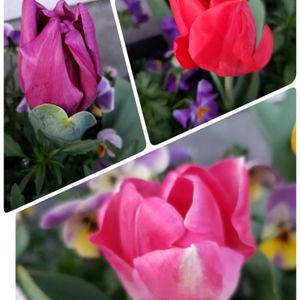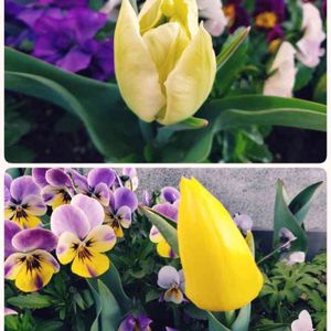 1つのプランターにミックス球根を植えたため 色彩的には統一感の無い花畑ができあがりつつあります😅 (ここに黄色のチューリップとピンクと紫のアネモネとさまざまな色のビオラが混植) …ひとつひとつのお花は可愛いです😆💦