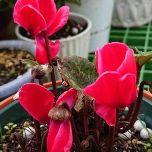 こんばんは😃🌃 夏越ししたシクラメン 葉っぱが少ししか有りません❗