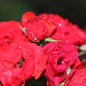 2019.6.29 この前と同じ赤いミニ薔薇。 自分らしく撮った一枚。 雨で濡れた薔薇にストロボを当てて アクセントをつけてみました。