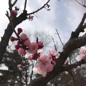 木に名札が付いていました ネットで調べてみたら、梅の一品種 ですが、果実は酸味が少ないと出ていました 花弁の色に透明感があり 見惚れる可愛らしさです💕