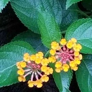 やっと我が家のランタナが咲きました。リボンの蕾が可愛くて💕 でも、トゲトゲ痛いですね‼️ オレンジも有るのですが、まだまだ咲きそうにありません。