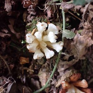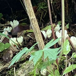 キヨスミウツボ(清澄靫) ハマウツボ科 花期: 6月中旬~7月中旬頃 ・木の根に寄生する多年草 ・複数年のあいだ育成する植物 ・葉緑素をもたず、他の植物から養分をもらって生育するため通常の葉もない。 ・湿り気のある木陰などに生える ・キヨスミウツボが寄主とする植物は、アジサイ、ムラサキシキブ、ウンゼンツツジ、アラカシ、ウラジロマタタビなど多岐にわたる ・地面から束になって出る茎の先に、厚みがあってやわらかい質感の花が5~10個集まって咲く ・花は筒状で、長さ約2~3㌢  はじめは白色で、のちに黄色をおびてくる  先は上下2つに裂け、花の中から4本の雄しべがのぞく。 花が終わると直径約0.5~1.5㌢の白い球形の実をつける まだ見たことの無かったキヨスミウツボを探して歩きました。 この季節花が少ないせいか、皆さん同じものを探してらっしゃいました〜 アジサイに寄生と聞いてアジサイの下の方見れば、テイカカズラの花弁がたくさん落ちていて、とても判別できるものではありませんね〜😭 丁度知り合いの方が通り、場所を教えてくださいました♪♪ 前日の雨もあり、茶色くなっていますがこの様な群生を3ヶ所見つけました♪ ②よく見てみると花が咲いています♪ ③では、蕊まで見られました♪ この場所、アジサイへの寄生ではなく何かの木に寄生してたようです。 📷 2024/6/19