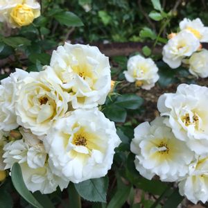 バラ・アルバメイディランド* 修景バラ 白い小輪の花が房になって 咲いています ほとんど手もかからずに 剪定でボリュームも調整するくらい 豪華な大輪もいいけど 小輪のバラがたくさん咲くのも 見事です✧︎◝︎(*´꒳`*)◜︎✧︎˖