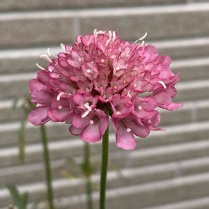 スカビオサ松虫草 サーモンピンク やっと目覚めたピンクちゃん タグはサーモンピンクなんだけど 素敵なピンクだけどサーモンとは違うような😊 時差で咲き出す我が家のスカビオサ のこるはホワイトメイデンのみ スッキやねん🤭