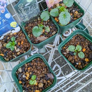 こぼれ種からの発芽組 小さいポットに移植しました タグはこの鉢植えから発芽してたっていう目安です どんな子咲くかな? そもそも咲くかしら? もしかして雑草だったりしてw