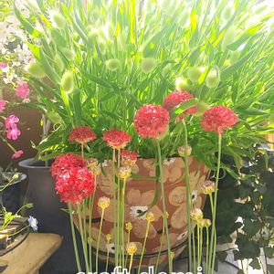 ベランダのお花 アルメリア・バレリーナレッド 先日、小旅行先で 出会いました まんまるで赤くて…🔴 ドッキュン♡❣️(ӦvӦ。) 蕾もたくさん。。 わくわく🥰➰