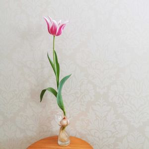 水栽培チューリップ咲きました マステでラベリングしてたんだけど、いつの間にかとれてて品種不明です