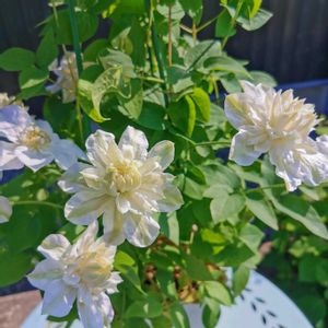 クレマチス グレーヴェエリックルース 咲き出しました 去年は咲かなかったのよ 今年初開花でこのかわいさ 一重から八重咲きの変化が素晴らしい 白に薄緑の線が大好物です