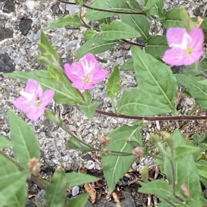 こんにちは♪ 今朝の散歩で出会いました〜 アカバナユウゲショウ 道路の割れ目からのびのびと🤭 朝でも綺麗に咲いていました♪🎶