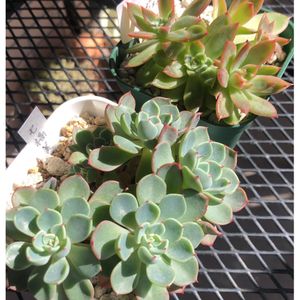 忘れていました、もう一枚。 斑入りモンステラと一緒にお迎えしたエケベリア。 そちらのお店は熱帯植物やビザールプランツ等も置いていますが多肉がメイン。 お店の従業員さんに「多肉はいっぱい持ってらっしゃるの?」って聞かれて「多肉は少し。観葉植物が大好きでそっちの方がたくさん…」との返事に「多肉はこの間すっごくたくさん持ってらっしゃる人が来たのよ!もうすごくてね~インスタやってる?その方のインスタ凄いのよ」と多肉トーク改め1番興味が湧かない話が始まってしまったので、多肉は好きだけど観葉植物ジャンルも好きな私はちょっとしょんぼりです。 多肉を勧める時は知らない誰かの話をするのはお勧めしません🙅🏻 多肉初心者がお店に来た時はどの多肉が可愛いかの話の方が好きですよ。