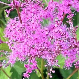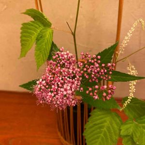 「キョウカノコ」or「シモツケソウ」の蕾 どっちか見分けが付きませんが、花が咲いたら華やかになりそうですね❗ 花が「シモツケ似」で、葉が🍁モミジ葉形のギザギザ