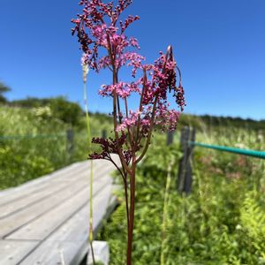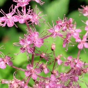 ①②シモツケソウ バラ科シモツケソウ属 多年草 別名はクサシモツケ 日本固有種 関東地方以西の本州、四国、九州に分布。 やや湿った山地の草原に見られる。 和名は花がシモツケに似ていることから。 草丈30〜100cmで、多数の茎が株立ちになり、花径4〜5mmのピンクの花を付ける。花弁は3〜5個、雄しべが多数で花糸が長い。 花期6〜8月 ③コシジシモツケソウ バラ科シモツケソウ属 多年草 シモツケソウの日本海側タイプ 山形県から富山県にかけての豪雪地帯に分布。 山地から深山の沢沿いや、やや湿った場所、林縁に自生する。 園芸種のキョウガノコの原種と言われる。 葉は羽状複葉で、側小葉がとても小さい。 ピンク色の小さな5弁花を付ける。 花期6〜8月