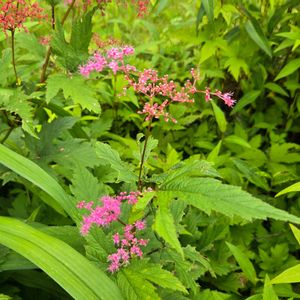 🍀🌻🪴💐🌹🌻🍀 🍀🩷シモツケソウ(下野草)🩷🍀 💐シモツケソウの花言葉は(純情) (穏やか)です 💐シモツケソウ(下野草)はバラ科に 属する多年草です 💐シモツケソウの花は小さな白ま たは淡いピンク色の花を多数つ けることが特徴です、花は円錐 状の花序に集まり、夏から秋に かけて咲きます 💐葉は対生で、細長い形をしており 縁には波状の切れ込みがあり、葉 の表面は緑色で、裏面は少し白っ ぽいことがあります 💐草丈は約30cmから1m程度に成長 します、種で繁殖しますが、地下 茎からも新しい芽を出し、群生す ることがあります 🍀🌻🪴💐🌹🌻🍀