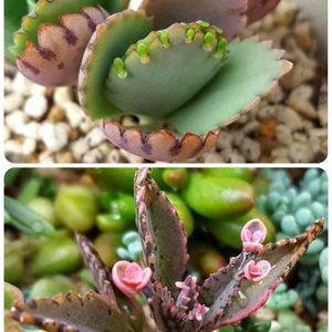 ⬇️不死鳥錦と、⬆️不死鳥です。 摩訶不思議で、すごく曲がっていても、植えると、次第に真っ直ぐになります👏🏻✧*。٩(ˊᗜˋ*)و✧*。 錦の方は、上の子どもを取らないでいると、ピンク色から紫色に変化して、まるで孔雀のようになります✨⭐😆😍 早くそれを見たいです🤗🤔