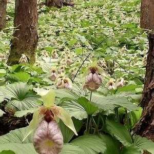 誰かな?お!🏷️単色伯爵 なんて言ってるのは?(^_^;) 実物を見た方は少ないと思います 今日のお花 「クマガイソウ」です 葉っぱ1枚が手のひらサイズ、花の大きさは鶏卵Sサイズです 国内最大の群生地、保護活動はしてますが、もちろん自然のままの自生地です 画像の10倍以上の面積はありますよ 2023,05,11 撮影 数日早かったかな?まだ花色が薄いですね(^_^;)
