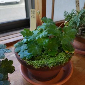 〈地味投稿〉今日のお昼は、鶴岡麦やさん(鉢確認も兼)にしました。1️⃣ダイモンジソウ「緑仙」2️⃣「聖(ひじり)」3️⃣「寒わらび」無事茎伸びそれらしくなり、三種置きました。4️⃣「トキワシノブ」居心地良いから根が、自宅にいる以上に回り始めてます。お客様の声に反応するみたい。家には🤔帰りたくないように見え、帰宅は来月にします。ヤブランはお店(写メ無し)入口に、今は置かせてもらってます。