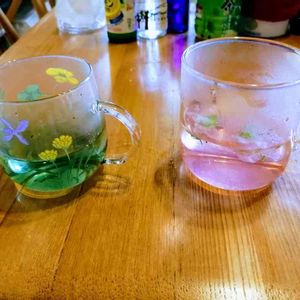 庭で採れたコモンマロウを使ってマロウティー淹れてみました🌺 青からレモン入れてピンクへ☆ どっちもめちゃキレイ🤓 レモンが無かったのでポッカレモンでやってみました♪
