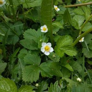 森のいちごも花が咲いています🌼 実は小さいので広い森の中だと中々見つけられないけれど、見つけたときはラッキーハッピーなのです🍓🥳