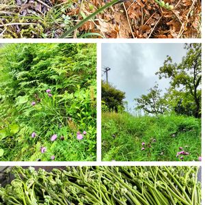 今日も☔ですが、 しばしの間〜止んだ隙に裏山に〜💦 ワラビをこんなにも採れました✌️🌿❣️ ワラビ畑にノアザミもいっぱい咲いてます🪴
